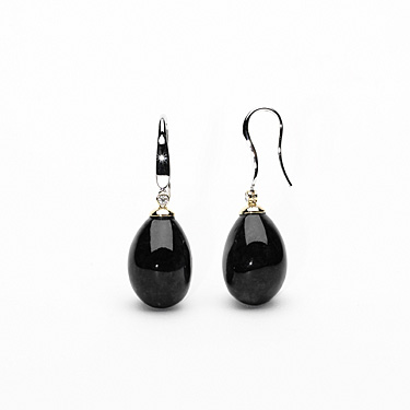 Black Jade Baroque Drop Earrings In 18 Kt. Yellow & White gold.