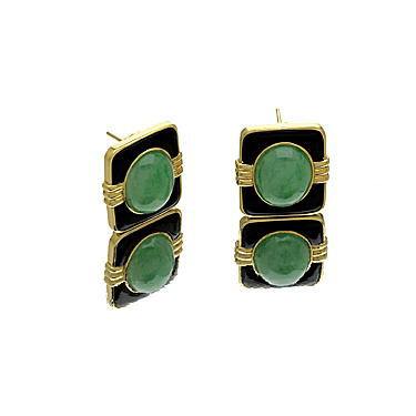 Black And GreenJade Cushion Earrings In 18 Kt. Yellow gold.