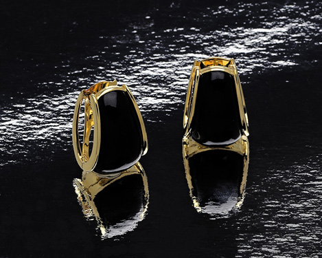 Black Jade Pear Shape Earrings In 18 Kt. Yellow Gold.
