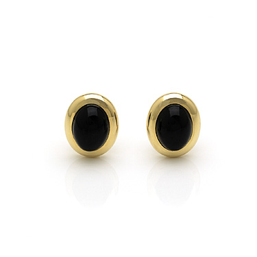 Black Jade Lunar Oval Earrings In 18 Kt. Yellow Gold.