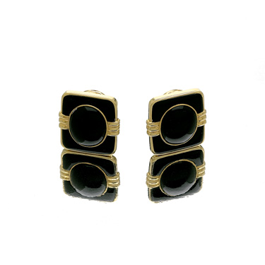 Black Jade Cushion Earrings In 18 Kt. Yellow gold.
