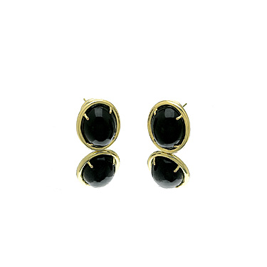Black Jade Classic 4 Prongs Oval Earrings In 18 Kt. Yellow Gold.