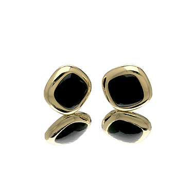 Black Jade Cushion Earrings In 18 Kt. Yellow Gold.