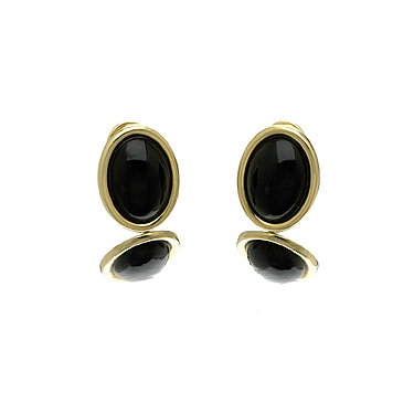 Black Jade Classic Oval Earrings In 18 Kt. Yellow Gold.