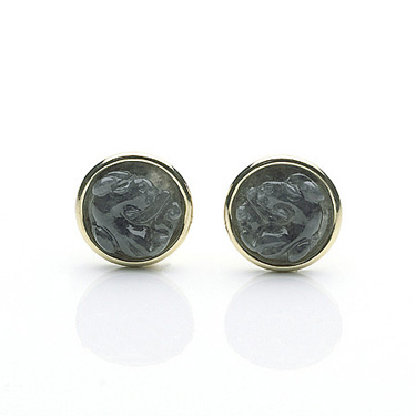 Gray Jade Double Dragon Earrings In 18Kt. Yellow Gold.