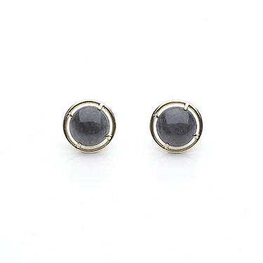 Gray Jade 4 Prongsl Wire Earrings In 18Kt. Yellow Gold.