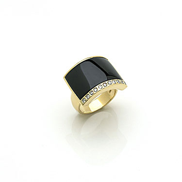 Black Jade Bridge Ring In 18 Kt. Yellow Gold With Diamonds.